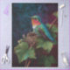 Papel de seda de decoupage con un hermoso colibrí de garganta rubí sentado cerca de su nido.