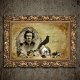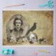 La epopeya de Edgar Allen Poe y el oscuro victoriano, incluyendo retrato en un marco oval grabado, cuervo encaramado en el cráneo, verso manuscrito en la mano de Poe de The Raven, cubierta de partituras de Annabel Lee y rociado de viejos rosas en un gruñido y afligido pergamino sepia. Adecuado para el arte de desconexión.