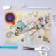 Papel de tejidos con la composición 8 (1923) de la pintura al óleo de Wassily Kandinsky. Una interacción geométrica y colorida de líneas y formas crea un ritmo visual único. ¡Un buen regalo para los coleccionistas de arte rusos!