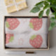 El diseño presenta un encantador patrón de fresas sobre un fondo rosa claro.