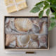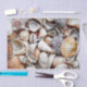 Las conchas marinas de la playa oceánica diseñan artesanías desconchan papel de tejido. Bonito y elegante envoltorio náutico. Derechos de imagen de Marg Seregelyi Photography.