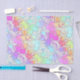 Gradientes híbridos de arcoiris pastel en un campo medio coloreado de cuadrados energéticos.