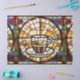 Un diseño muy complejo, con una taza de café de estilo vidriera, que combina colores vivos y líneas elegantes para añadir un toque de arte y calidez a cualquier espacio.