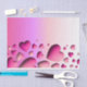 Diseño de papel tisular El día de San Valentín con corazones 3D rosados sobre fondo degradado de blanco a rosa.