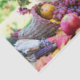 Papel de tejidos con una fotografía de una mesa llena de naturalidad. Está rodeado de cornucopia, coloridas verduras de cosecha y frutas.