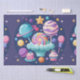 Mezcla el capricho de una tienda de dulces con el asombro del espacio exterior en este tema dulce y estelar. Las galaxias pasteles, los planetas dulces y el polvo de estrellas purpurinoso crean un universo endulzado y de ensueño. Ideal para decorar cualquier objeto fiesta, como tapetes de quequitos, diseños de globos y bolsos de fiesta. Este diseño convierte cualquier celebración de cumpleaños en una aventura de confitería interestelar que está fuera de este mundo. Ideal para ocasiones alegres como cumpleaños de niños, aperturas para caramelos, eventos con temática espacial y fiestas de cosplay de fantasía.