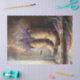 Esta pintura digital al óleo muestra un par de botas vintage de vaquero llenas de brotes de lavanda, con abejas melíferas zumbando alrededor de las aromáticas flores. Las suaves texturas y los tonos cálidos crean un ambiente rústico encantador, perfecto para una casa de campo o una decoración de inspiración rústica.