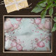 This charming tissue paper features a pattern of cute young bunny rabbits holding pink Easter eggs. The rabbits are surrounded by natural wreaths of twigs and more pink and mauve Easter eggs. The background is a soft teal green watercolor look. These tissue paper sheets make great linings for Easter baskets, accents for gift wrapping, or decoupage furniture, or paper crafts projects.