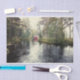 Papel De Seda Cute granero rojo en un bosque aislado y lago
