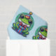 Papel de tela de cumpleaños con temática de rana azul y verde.