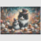 Papel De Seda Cute Tuxedo Cat and Mouse Fantasy Decoupage.