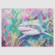 Papel De Seda Cuto colorido tropical acuarela tiburón