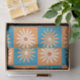Esto es hermoso patrón de flores de margarita retro a cuadros en tableros azules y naranjas