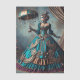 Una bella y peculiar cantante de circo victoriano de vapor vintage, de color azul y oro ornamentado con engranajes de reloj trenzados en su elegante vestido, se pone con su sombrilla en este vintage mundo de fantasía histórica. ¡Es perfecto para artesanías como la desconexión!