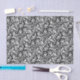 Papel seda en un modelo del damasco de William Morris del vintage de las flores y de las hojas del cardo, en blanco, en un fondo negro, digital aumentado y coloreado