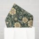 Dark green wallpaper pattern featuring repeating stylized yellow flowers interspersed with sage green leaves and swirling vines.