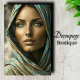Transforme sus proyectos creativos con el papel de desenlace de retrato premium de Decoupage_Boutique. Este diseño impactante presenta a una mujer cautivadora con ojos verdes luminosos y detalles delicados envueltos en un pañuelo con motivos turquesa y dorado sobre un fondo suave y neutro. Este diseño crea un elegante punto de referencia perfecto para las paredes de acento de las habitaciones, los lujosos spas o los espacios de inspiración bohemia. COMBINACIONES DE COLOR: turquesa, oro, crema, bronce y verde sabio realzan la belleza natural. CARACTERÍSTICAS DE DISEÑO: características faciales detalladas, texturas de tela lujosas y colores ricos que contrastan le dan profundidad a sus proyectos. PERFECTO PARA: cajas de joyas, bandejas de tocador, muebles de acento, salones de belleza, despliegues boutique y paneles decorativos. Ideal para una variedad de proyectos, grandes y pequeños. Decoupage Boutique #PortraitArt #BohemianDecor #FeminineArt #BeautyIndustryStyle