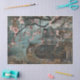Vintage, retro look a este papel de tejido ideal para desacoplar, hacer artesanías, desechar libros, envolver regalos o llenar bolsos de regalo. Puerta Victoriana de imitación con un hermoso árbol de cerezo en primer plano.