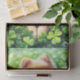 Papel de papel tisular de desunión lindo con un adorable perro naranja Pomerania tendiendo un campo de trébol con algunas rocas de champú. Un lindo regalo del Día de San Patricio para los dueños y amantes del pom pomerania.