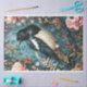 "Majestic Magpie Mural" Esta obra de arte exhibe una urraca en su gloria total contra un tapiz de papel pintado de flores vintage, que simboliza la elegancia de la naturaleza en medio de la creatividad humana. Arte digital creado por RHDesigns para muebles, sillas, lienzos, arte poster y hasta decoración casera.