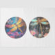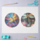 La imagen muestra dos círculos redondos de 12 pulgadas con diseños vibrantes y coloridos de libélulas. El círculo izquierdo representa una libélula con alas naranjas y amarillas en medio de un fondo de flores azules y rosas. El círculo derecho incluye una libélula con alas azules y amarillas en un fondo oscuro con salpicaduras de oro y flores rosas. Los detalles intrincados y los colores vivos hacen que estos diseños sean visualmente llamativos y atractivos círculos de 12 pulgadas, diseños vibrantes de libélulas, libélulas coloridas, alas naranjas y amarillas, flores azules y rosas, fondo oscuro, salpicaduras doradas y rosas, detalles intrincados, diseños visualmente llamativos, RHDesigns by 2chattychicks.