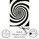 Black and white spiral design, optical illusion branding, RHDesigns by 2ChattyChicks logo, creative teaching group promo, Facebook eclectic creations, hypnotic swirl graphic, bold branded layout, artistic scissors emblem, The Crew logo design, visual identity for educators, spiral motion graphic, promotional image for creative community.