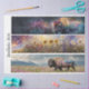Cosmic bison galaxy panel art, wildflower field sunrise painting, patriotic bison mountain floral scene, RHDesigns western panel trio, rustic wildlife wall art decor, American flag buffalo artwork, dreamy wildflower prairie panels, pink purple yellow bloom field, textured sky nature panel set, bold buffalo themed wall decor.