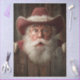 cowboy Santa rustic fence peek, whimsical Christmas western art paper, RHDesigns festive holiday crafting print, surprised Santa red hat scene, magical Santa mixed media supply, western Santa Claus decoupage art, rustic Christmas cowboy decor design, holiday Santa fence background image, charming Santa expression festive paper, seasonal cowboy Christmas crafting bundle