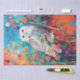 Un búho nevado rodeado de vibrantes formas y colores inspirados en el arte pop. El búho blanco se destaca sobre el fondo colorido de hojas, ramas de árboles y fondo relleno de pincel. Perfecto para agregar un elemento emergente de color a su proyecto de desconexión.