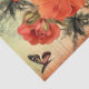 Un bonito diseño floral que presenta flores naranjas y rosadas y una mariposa sobre un fondo decorativo.