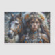Este impresionante retrato combina fantasía y elementos de inspiración indígena en una impresionante muestra de detalles ornamentales y poder espiritual. La composición combina a la perfección un corcel noble con una figura adornada, ambos adornados con una intrincada decoración de color turquesa, dorado y plateado. La cara del sujeto tiene delicados patrones ceremoniales azules que reflejan los elementos decorativos de su traje elaborado, mientras que su tocado combina girasoles, flores blancas y plumas en una corona majestuosa. La sofisticada paleta de colores de la pieza teje tonos turquesa profundos, dorados ricos y blancos etéreos contra tonos atmosféricos más oscuros, creando un aura de regalidad mística que transformará cualquier superficie en un encantador punto focal. Parejas de color perfectas: Turquesa + Oro de edad Navy Profunda + Bronce de Marfil + Perla Azul Real + Amber Negro de Medianoche + Azul Acero Elementos de diseño: joyas ceremoniales intrincadas Detalles de la pluma y la cabeza floral Material de la cabeza de los caballos Ornate Modelación de arte facial Textiles dimensionales Mobiliario Ideal Transformaciones: armoire de joyería Bohemiana Decorosa pantalla de habitación grande pecho o tronco Sala de meditación mesa de altar Gabinete de tocador Boho Este diseño sobresale en espacios que adoptan elementos espirituales y bohemios. Su rico simbolismo y su ornamentación detallada lo hacen particularmente adecuado para muebles en espacios de meditación, vestidores o retiros artísticos. Cuando se aplica a los muebles, crea una sensación inmediata de espacio sagrado y elegancia mística, transformando piezas comunes y corrientes en poderosas declaraciones artísticas que honran la estética inspirada en los indígenas y mantienen un atractivo contemporáneo.