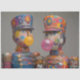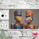 This vibrant pair of painted nutcracker-style figures brings playful energy and modern flair to your holiday crafting. Each character pops with a bubblegum bubble—one pink, one orange—set against a backdrop of multicolored polka dots and splattered paint. Their tall cylindrical hats and exaggerated features blend classic toy soldier charm with street-art whimsy, making this panel perfect for festive trays, furniture art, or layered mixed media projects.