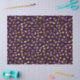Este diseño atrevido y hermoso de la impresión animal tiene un fondo morado con manchas de leopardo negro y dorado. Los puntos son similares a los estampados chita o jaguar. Excelente para trabajos de arte, artesanía de papel o envoltura de regalo.