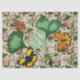 Mosaicos color amarillo azul y naranja cerca de grandes hojas verdes y flores rosas sobre un fondo de partitura. Perfecto para despucharse, artesanías o envolver regalos. ¡Asegúrate de comprobar la bolsa de regalo correspondiente!