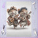 This whimsical panel features two joyful, anthropomorphic mice mid-leap, dressed in ornate Renaissance attire and strumming miniature stringed instruments. Their richly textured garments—lace collars, embroidered fabrics, and patterned vests—evoke a festive courtly performance. With expressive faces and dynamic poses, these musical mice bring charm, movement, and historical flair to any creative project.