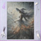 A mysterious woman stands entwined with her surroundings, her flowing dress and wide-brimmed hat merging seamlessly into a textured, abstract landscape. Her silver hair and sculptural gown ripple like wind and water, blending with swirling patterns, barren branches, and birds in flight. A crescent moon glows above, casting ethereal light across the scene. This painterly composition evokes a sense of magic, solitude, and transformation—ideal for fantasy storytelling, mystical branding, or enchanted seasonal art.