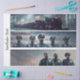 This solemn and powerful police tribute design is crafted for 26x6 handsaws, featuring three horizontal panels that honor service, remembrance, and unity. The top panel shows officers kneeling in a moment of reflection, set against a nighttime cityscape. The middle panel presents six officers standing in formation before a stylized American flag, symbolizing strength and solidarity. The bottom panel continues the theme with five officers in uniform, framed by a painterly flag backdrop. With rich textures and emotional depth, this decoupage paper transforms vintage saws into meaningful displays of honor and respect—perfect for tribute pieces, workshop décor, or patriotic furniture art.