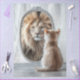 Kitten sees lion in mirror,