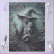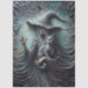 Skeleton witch art, gothic fantasy illustration, black cat and witch, bone cloak sorceress, eerie Halloween decor, teal cracked background, bats and skeletal figure, dark enchanted forest, surreal witch image, mystical undead character