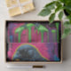 Un poderoso cuervo negro, con sus elegantes plumas tan profundas como la medianoche, destaca sobre un llamativo fondo rosa y negro. Un contorno amarillo audaz resplandece alrededor de su forma, dándole una presencia electrizante, casi de otra índole.