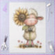This whimsical sunflower sheep design brings cheerful charm to any project. Featuring a fluffy cartoon-style sheep holding a giant sunflower, surrounded by blooming yellow and pink flowers, this artwork radiates warmth and joy. The sheep’s gentle smile and upright stance add personality, making it perfect for greeting cards, nursery decor, or seasonal crafts. With its clean white background and vibrant floral accents, this illustration is ideal for springtime themes, children’s products, or playful decoupage.