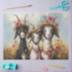Esta deliciosa imagen cuenta con dos adorables cabras vestidas con encantadores accesorios. La cabra de la izquierda lleva una hermosa corona de flores con flores rosas y amarillas y tiene un palo en la boca, añadiendo un toque juguetón. La cabra de la derecha, parcialmente oscurecida, está adornada con una elegante bufanda y una campana, colocada en un fondo de un cielo azul con nubes esponjosas y rodeada de flores vibrantes. Esta escena capta la esencia de la moda y la creatividad de los animales de granja, lo que lo hace perfecto para añadir un toque de diversión y encanto a cualquier colección. Creado por RHDesigns of 2chattychicks, esta obra de arte es ideal para usar en bolsas de tela, posters y decoración casera.