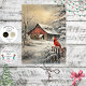 Papel De Seda Decoupage Winter Scene Red Barn Cardinal Snow