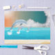 Ilustracion de tres delfines transplantando el océano. 100% Personalización. Haga clic en el botón PERSONALIZAR para agregar, mover, eliminar, cambiar el tamaño o cambiar cualquiera de los tipos de letra o gráficos.