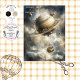 La imagen representa una escena surrealista y fantástica de un gran planeta que se parece a Saturno con sus anillos icónicos. El planeta está rodeado de diversos cuerpos celestes y escombros. Hay una estructura o un barco suspendido por numerosos cables o cuerdas, aparentemente atados a los anillos del planeta. El fondo está lleno de nubes y elementos cósmicos, creando una atmósfera de ensueño. Esta imagen es interesante debido a su imaginativa y de otro mundo representación del espacio, mezclando elementos de ciencia ficción y fantasía. escena espacial surrealista, planeta tipo Saturno, anillos icónicos, cuerpos celestes, desechos espaciales, estructura suspendida, cables o cuerdas, atmósfera de ensueño, elementos cósmicos, fantasía de ciencia ficción, RHDesigns by 2chattychicks.