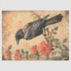 Raven sentado en una rama cerca de rosas con un fondo de crema.