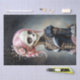 Una belleza esquelética con delicados rizos rosados y un cabecero floral, vestido con un atuendo victoriano ornamental. Combinando romance y macabro, este diseño se adapta a la descomposición inspirada en vintage, el arte de los medios mixtos o los tributos del Día de los Muertos.