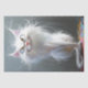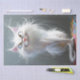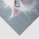 Esta pieza de arte digital presenta un gato blanco de pelo largo y antropomorfizado con ojos amarillos llamativos y una expresión gruñón. El gato está parado en posición vertical sobre un fondo gris sencillo con manchas de pintura coloridas en el borde inferior, resaltando su piel esponjosa y su personalidad única. El ilustracion capta una mezcla de realismo y capricho, lo que lo convierte en una pieza atractiva y encantadora.