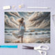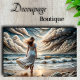Esta extraordinaria composición combina la fluidez del Art Nouveau con el espectacular surrealismo costero. El punto focal -una figura solitaria en un vestido barrido por el viento que parece hacerse eco del movimiento mismo de las olas y las nubes- crea una sinfonía visual fascinante. La paleta está magistralmente curada, con luminosos blancos de perlas y tés oceánicos que se transforman en cálidos tonos dorados donde el sol se cruza con el mar. Lo más destacable es el flujo armonioso entre elementos: la tela de la vestimenta, las nubes onduladas y las olas de cresta comparten una misma cualidad rítmica que sugiere una orquestación divina. Cuando se transforma en descomposición, esta pieza eleva el mobiliario a obra de arte escultural. El movimiento dramático y la escala de la composición crean un efecto casi tridimensional, mientras que las armoniosas transiciones de color garantizan la versatilidad en cualquier interior sofisticado. Pares de colores perfectos: Blanco Perla con el oro de la escarcha Verde azulada con el azul marino de la arena de la nube gris con marfil de bronce con fondo verde del mar profundo Elementos de diseño: formas de flujo sincronizadas a través del cielo y de la tela Arquitectura de nube dramática con los remolinos barrocos Modos dinámicos de onda con tonos metálicos Interacción de la luz etérea con la superficie del agua Perspectiva maestra Dibujo de la escena formaciones: Grand Curved Sideboard (paneles frontales) Art Deco Vanity (espejo surround) Barroco Screen Divider (paneles completos) Curved Bombé Chest (frente de cajón) Empire Style Console (superficie superior) Este diseño transforma piezas ordinarias en puntos focales extraordinarios que captan la atención al tiempo que mantiene un sofisticado sistema de retención. Las formas fluidas y la composición dramática lo hacen particularmente adecuado para piezas de mobiliario curvo o de declaración donde el diseño puede abarcar completamente el movimiento inherente a la obra.