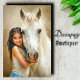 Celebra la delicada belleza de este caballo blanco y el cariñoso abrazo de un joven chica con este diseño de papel de tejido desacoplado. Ideal para remodelaciones de muebles, proyectos rústicos DIY y rejuvenecimiento de temática ecuestre, este papel de gran formato aporta calidez, inocencia y encanto al campo a su obra creativa.